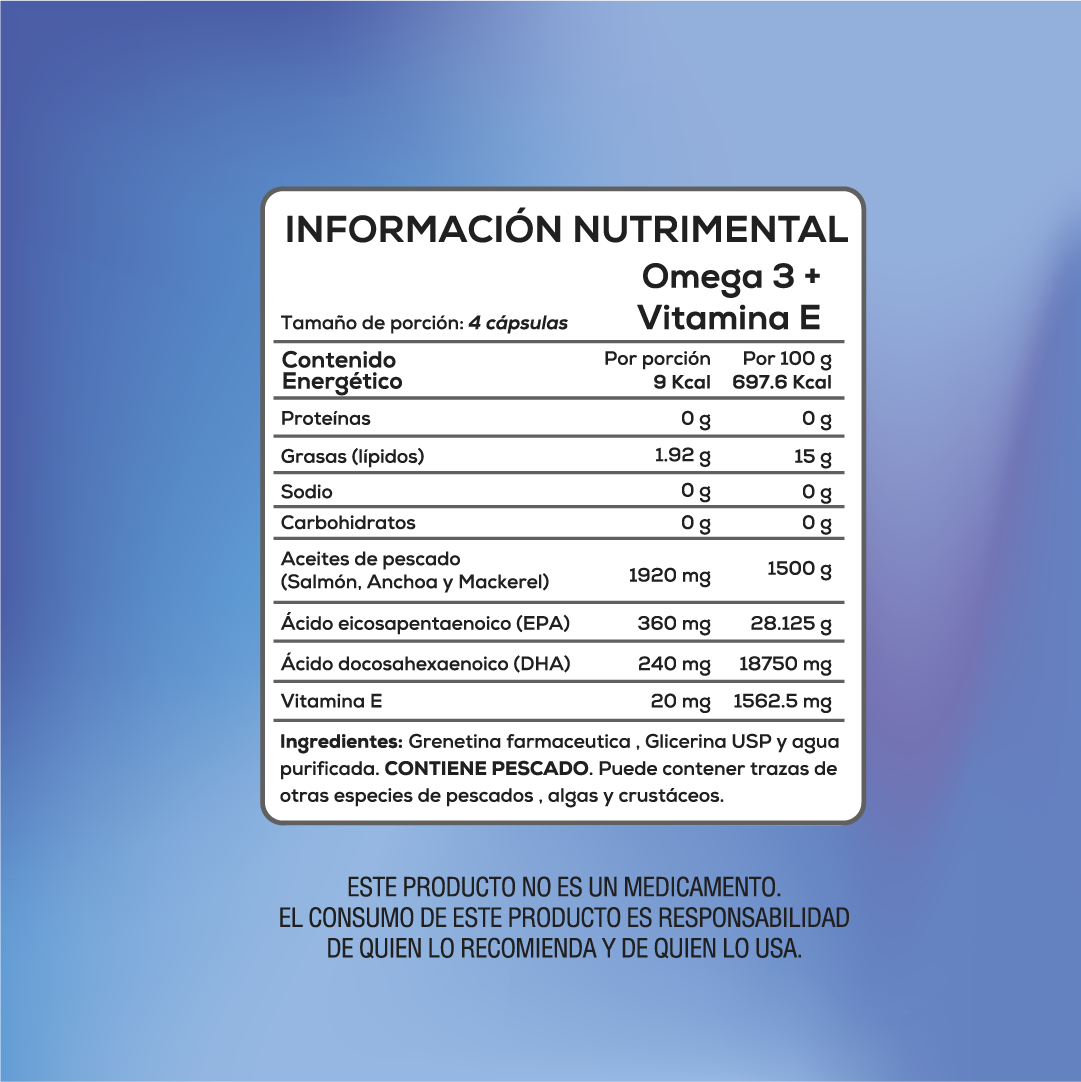 Los ácidos grasos Omega 3 (EPA y DHA) derivados del aceite de pescado, además de vitamina E es un nutriente antioxidante.