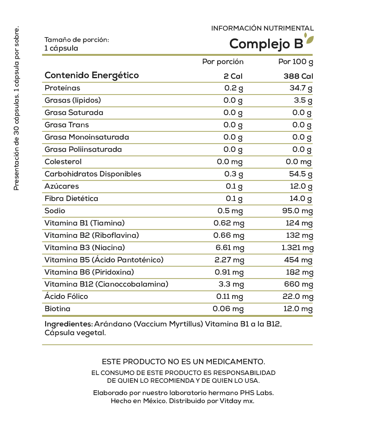 Complejo B 30 cápsulas B1 a B12