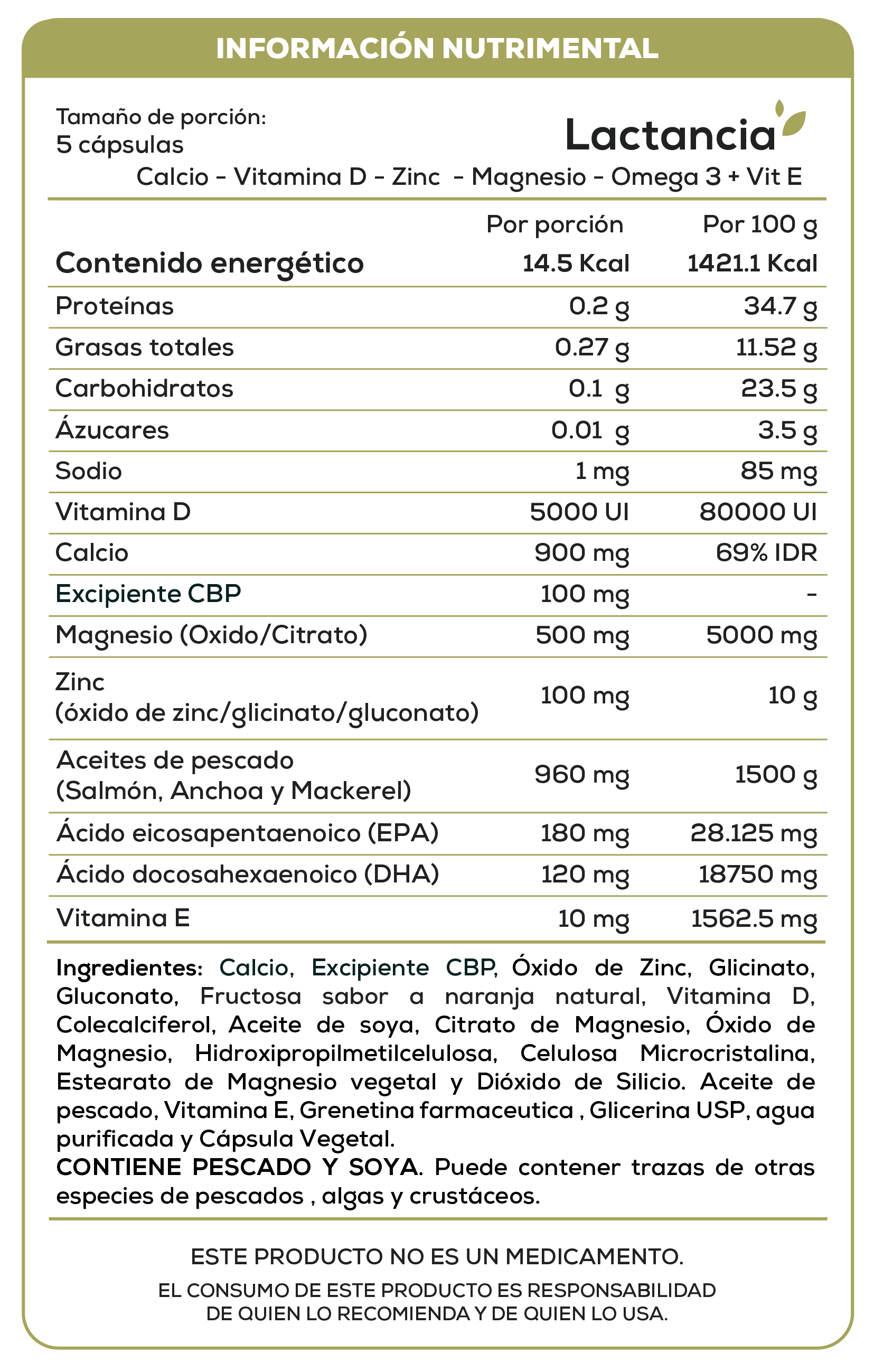 Contiene calcio, vitamina D, omega 3, zinc y magnesio.