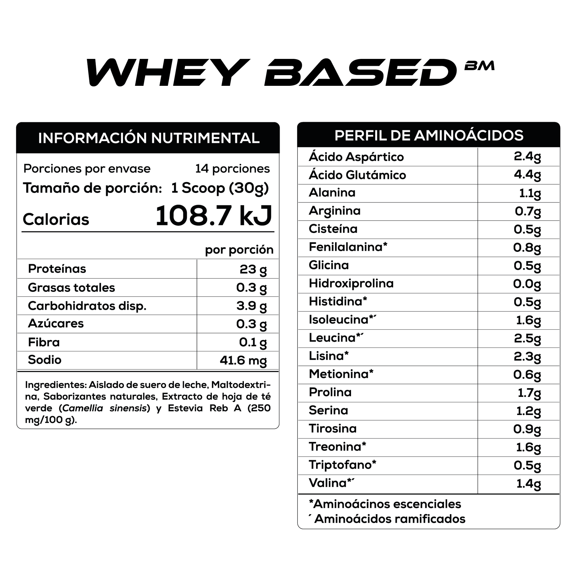 Ingredientes clave: Aislado de suero de leche, Maltodextrina, Extracto de Té Verde y Extracto natural de Vainilla.